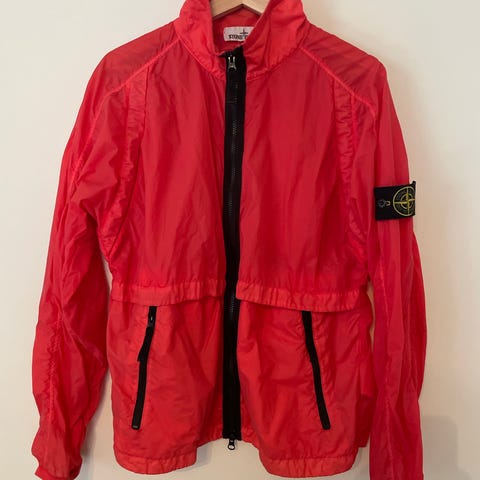 Solid jakke. Stone Islands kjente "David TC"-materiale er nesten skuddsikkert. Verdt hver krone. Denne sitter som Large. Dyp lilla, ikke knæsj. Voksen jakke som skiller seg ut blant beige og marineblå-gjengen.