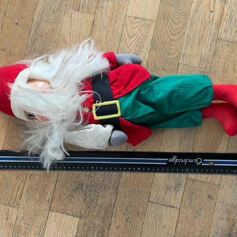 Klassiske/retro julenisse-dukker (mann og kone), i fin stand. Håndmalte ansikt, med klær i vadmel. Ca. 40cm høy.