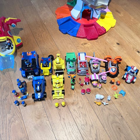 Sønnen min selger unna alle lekene sine i fra Paw patrol. Lekene er godt brukt, men noen av skadene har ingenting å si for bruken.
