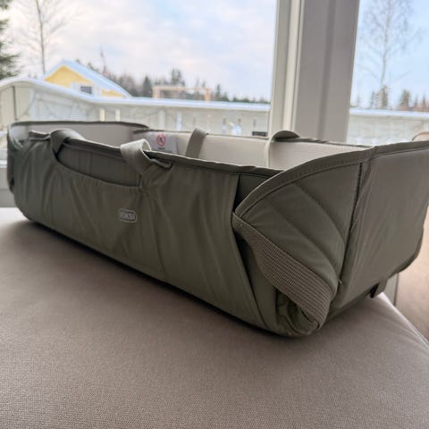Selger to stk svært lite brukt Voksi Carry Me babynest/bag i grønn.