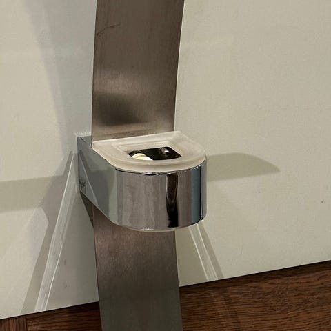 Fin spotlampe med to spotter i børstet stål.
