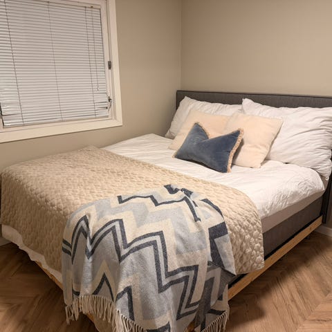 Det ene bordet under er knekt, men det er reparert, og jeg har ikke merket noe til det. Det følger også med to overmadrasser om det er ønsket!