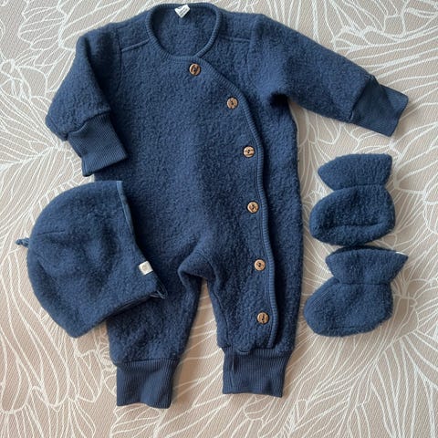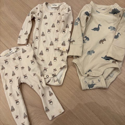 Klespakke Ull str. 62. 2 bodyer, 4 longs og 1 pyjamas.