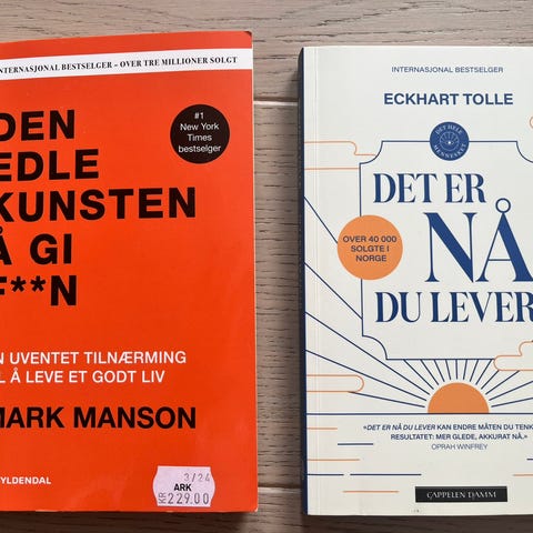 Begge bøkene har gul tekstmarkør i seg og noe skrift med blyant (se bildet som eksempel).