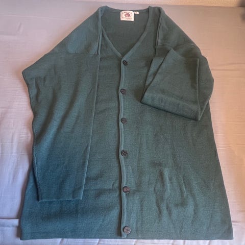 Bluse med tilhørende shorts, type oversized/stor og vid. Skjorten er grønn og laget av 100% viscose, har korte ermer, krage og knappelukking foran. 2 brystlommer. Shortsen har 2 lommer og en liten baklomme. Stoffet er lett og mykt, egnet til hverdagsbruk eller fin sommer/avslappet antrekk. Shorts: livvidde 41, lengde 56, høy i livet. Blusen: Lengde 68, vidde 62 cm. Er nyvasket, men trenger å strykes😊