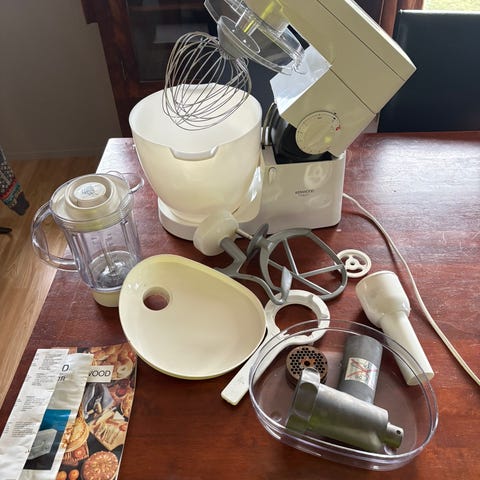 Fint og lite brukt Kenwood Major. Ca. 10 år gammal. Har alt ein treng til baking, samt kjøttkvern, pølsehorn, blender. Ta gjerne kontakt dersom du har spørsmål eller vil ha fleire bilete. Selgast fordi eg har fått ein Ankarsrum.