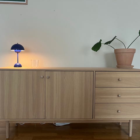 Skjenken har bruksmerker og selges derfor billig.