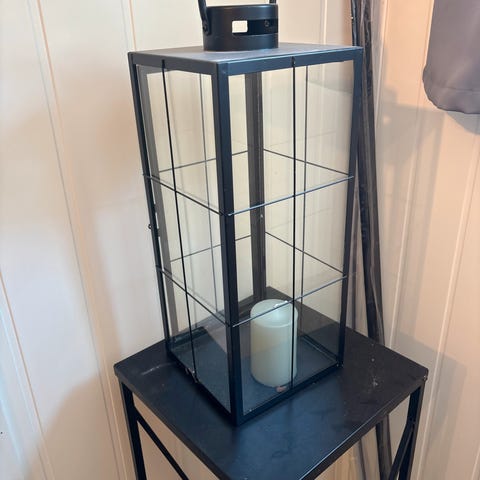 Selger denne fine lykten pga. ommøblering i stuen. Håper noen andre kan få glede av den. Stearinlys følger ikke med.