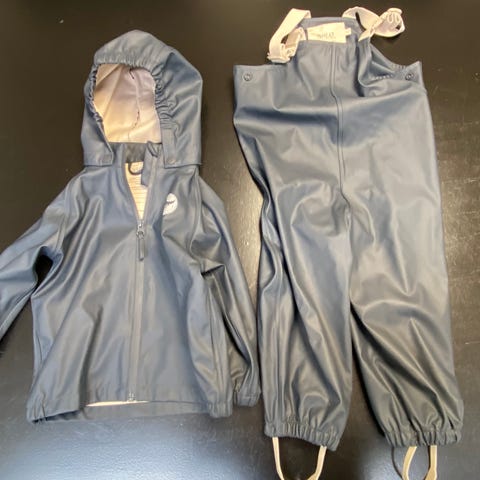 Nydelig regnsett fra Wheat i størrelse 80 selges. Den er uten særlig slitasje og begge strikk er inntakt. Noen merker/flekker på innsiden bare.