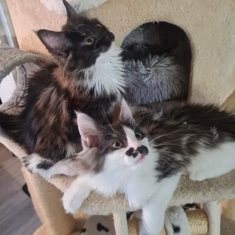 Den 24. November fikk vi to nydelige babyer ♥️ En gutt og en jente. Moren er renraset Maine Coon med stamtavle og far er ukjent. De to finner mye selskap i hverandre, så hadde vært kjekt om de kunne fått bo sammen, men er ikke et krav. ☺️ De er husrein.