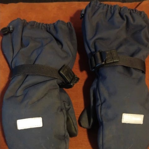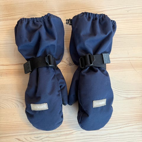 Selger et par mørkeblå Reima vintervotter med ReimaTec. Vottene er varme, vindtette og vanntette – perfekte til barnehagen.
