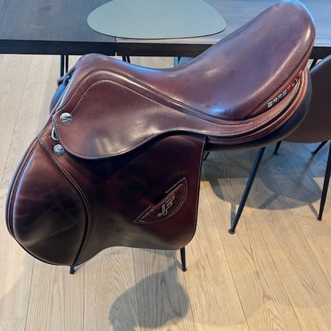 Salen er kjøpt helt ny for 3 år siden, men er ikke brukt aktivt grunnet skadet hest. Salen er kjøpt hos Smith Saddle Company AS.