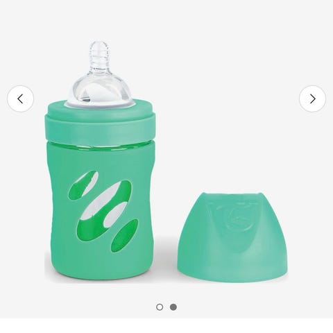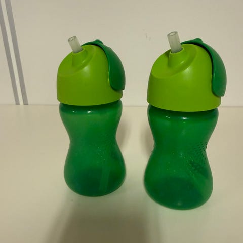 Munchkin skje-mateflasker på 90 ml i gjennomsiktig plast med grønn detaljfarge. Flaskene har integrert skje i silikon i stedet for vanlig smokk, beregnet for mating av spedbarn med grøt eller flytende mat. Måleskala på flaskene viser opptil 90 ml / 3 oz. Passer til bruk hjemme eller på farten når barnet skal mates direkte fra flasken via skjeen.