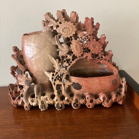 Solid serviettholder dekorert med to fugler. Kan også brukes som brevholder på kontoret. Denne er fra 60-70 tallet.