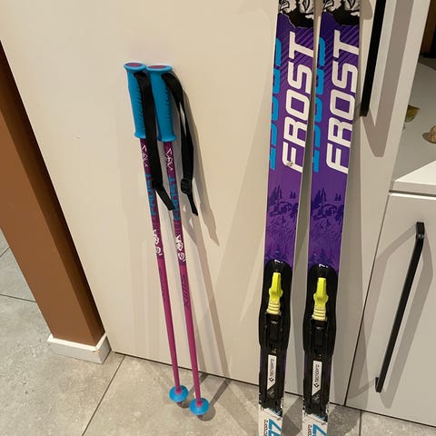 — voksne Fischer-ski med bindinger og staver — 650 kr