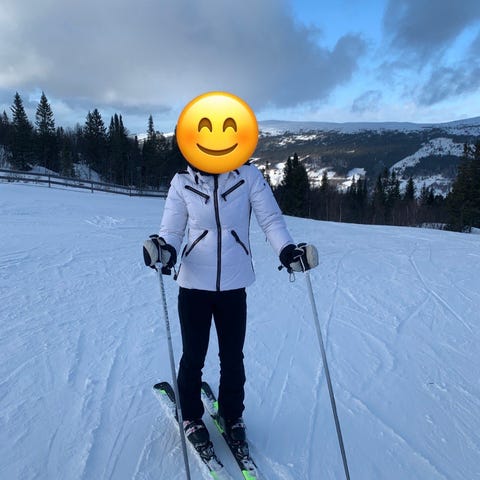 Skijakke med lufting u/arnene, brystlomme og ekstra knepping i midja. Kr 400,-