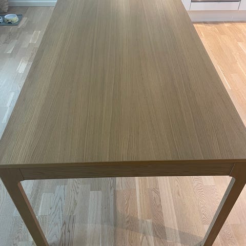 IKEA spisebord i tre, designet av stocholm. Bordet har avrundede hjørner og runde ben, med en bordplate i lyst treverk. Egnet som spisebord i spisestue eller kjøkken, med plass til flere sitteplasser rundt bordet. Passer til ulike typer stoler og innredningsstiler i hjemmet. Helt ny kjøpt august fra ikea skal flytte derfor sleges