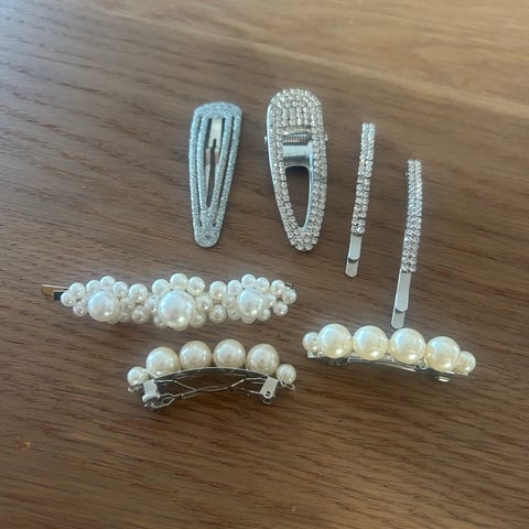 4 hårspenner og 4 ringer fra HM.