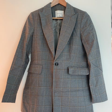 Innsvinget, klassisk ullblazer fra Ricco vero. Strl. 42, men liten i størrelsen. Sendes mot frakt, eller hentes på Ensjø eller i Oslo sentrum.