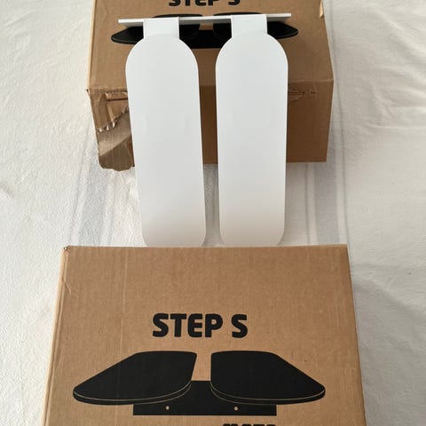 To identiske hvite Bill skohyller fra svenske Maze selges samlet for kr 1000,- Nypris for en kr 1431,-