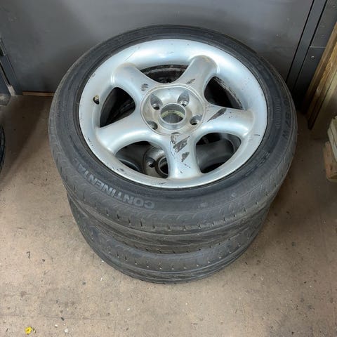 Felger 15x6,5 ET37 5x114,3. Stålfelg. Rusten og opplakkert i grønn, men ingen alvorlig rust
