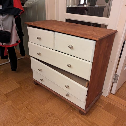 Malm kommode trenger nytt hjem. Er fi grei stand, men mye merker, og treger nok litt tlc. Gid bort, men må hentes i 3 etasje på Lade.