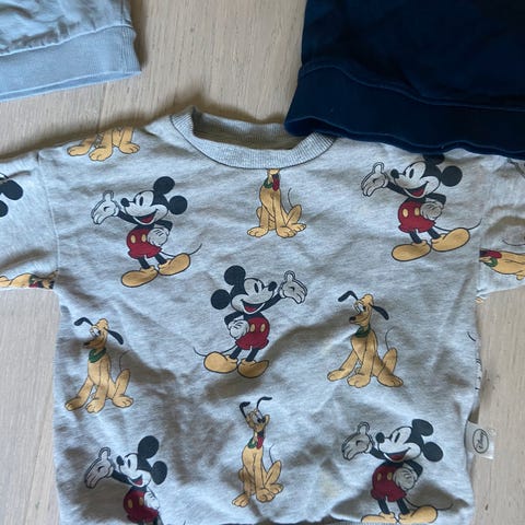 H&M bodyer og genser for barn i størrelse 86, unisex. Plaggene er i flerfargede varianter med ulike mønstre og trykk. Flere av bodyene er merket organic cotton. Settet inneholder langermede bodyer samt en langermet genser med motiv. Egner seg til hverdagsbruk for barn rundt 12–18 måneder, avhengig av barnets størrelse. 5 bodyer og 1 genser.