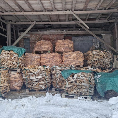 Selger tørr og godt lagret ved, perfekt for peis og vedovn. Alt er ferdig pakket og klar til henting.