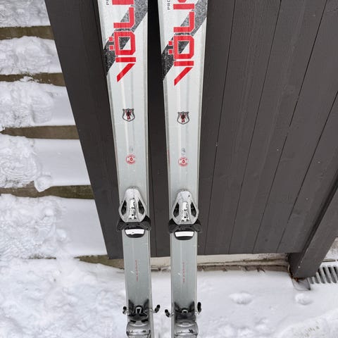 Völkl alpinski, 150 cm, med Marker bindinger. Skiene har twintip-inspirert form og bredere midje som egner seg til kjøring i både preparerte løyper og mer variert terreng. Undersiden er svart med grønn Völkl-logo. Toppene har flerfarget grafikk. Bindingene er justerbare Marker-modeller med DIN-skala oppgitt på bindingene. Passer som allmountain/freestyle-inspirerte alpinski. Lengde og andre spesifikasjoner bør kontrolleres ved interesse.