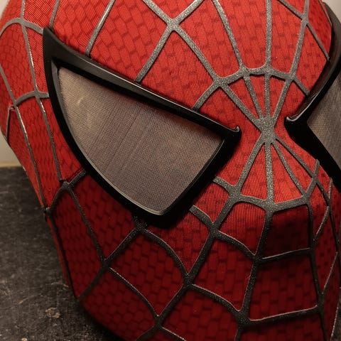 Marvel Spider-Man maske i rød plast med lysende øyne. Masken har innebygde lysfunksjoner i øyeområdet som kan skifte farge. Innsiden er utformet med polstring for bedre komfort ved bruk. Egnet som kostyme- eller rollelekstilbehør for barn eller voksne, avhengig av passform. Masken dekker hele ansiktet og har detaljer som etterligner Spider-Man-drakten. Samleobjekt. Har noen få merker. Kostet 2000,- ny. Selges HBO 500,-