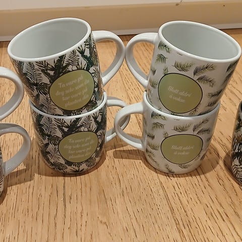 5 stk strikkekopper fra DesignHandel selges samlet for 200 kr.