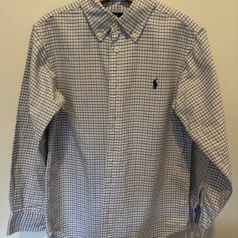 Polo Ralph Lauren skjorte for gutt i størrelse 4 år. Skjorten er i bomull og har rutemønster i blått og hvitt. Langermet modell med klassisk krage og knappelukking foran. Brodert logo på brystet. Passer til hverdagsbruk og mer formelle anledninger.