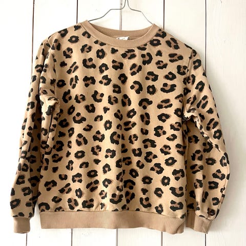 Leopard printet genser i strl 134/140, laget av 95%bomull & 5% elastan. Den er prøvd på en gang, men aldri brukt mer.
