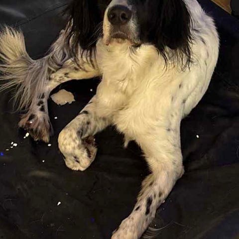 Jeg har en engelsk setter tispe som jeg må omplassere. Hun er 2 år gammel, og en skikkelig nøtt. Hun er en smånervøs type, men samtidig med en hode av stål. Aldri klart det å få hun til å gå fint i bånd og hun trekker som bare det. Hun åpner dører, stjeler ting hvor hun kommer til, kan være noe mat aggressiv, og da spesielt med unger. Hun kan noen ganger ha uhell inne og er derfor i bur når jeg ikke er hjemme. Det er ønskelig at hun kommer til et hjem med god tid til hun og som virkelig kan legge ned en innsats i å prøve å få hun til.