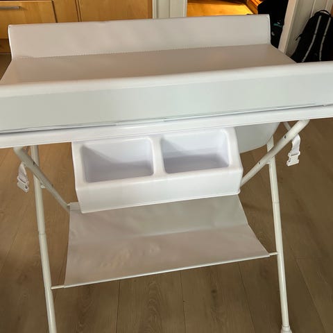 Stellebordet har stelleflate øverst med kanter rundt, en skuff under til oppbevaring av småting og to åpne hyller nederst for bleier, klær eller annet utstyr. Passer til bruk på bad eller barnerom der man trenger en fast plass til stell av baby.