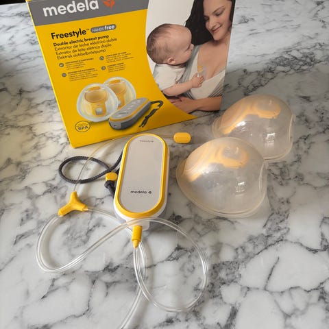 Medela Freestyle dobbel elektrisk brystpumpe med oppsamlingsskåler i størrelsene 21 mm og 24 mm.