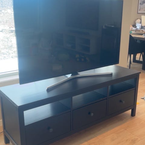 Ikea Vittsjö tv- benk i brunsvart.selges da vi ikke har bruk for den lengre. Er med 1 glass hyller.
