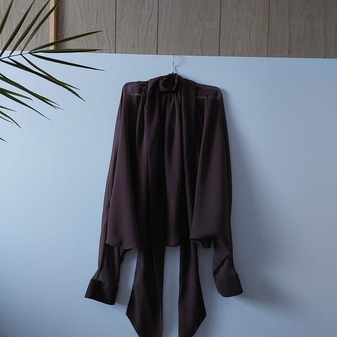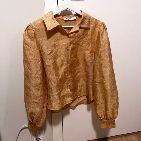 Elegant chiffon bluse i lys beige farve. Rysjer i front og på ermer.