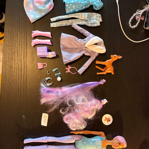 Basketballspiller barbie dukke med en ball 🏀. Har på seg basketball klær og joggesko.