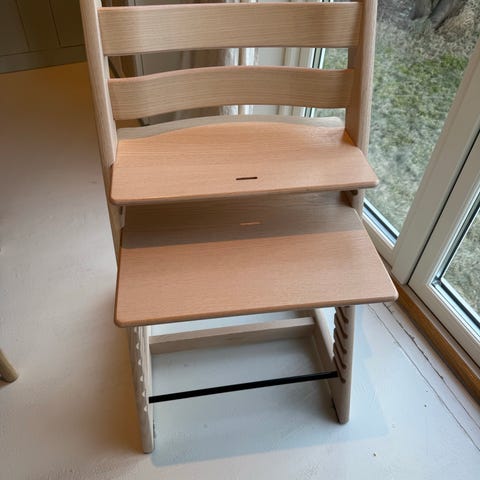 selger denne fine lyse stolen. Den skaper et stilrent resultat som passer i et moderne hjem. Stolen passer både babyset og newborseat. Stolen er pent brukt, men det kan fremkomme slitasje enkelte steder, men ingen skader eller feil ellers.