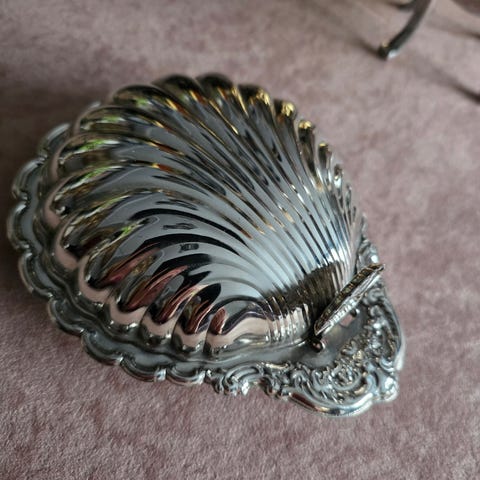Dekorativ skål på fot I sølv