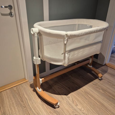 IKEA Åskvärd bedside crib på hjul. Barneseng som kan plasseres ved siden av voksenseng eller i stuen.