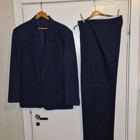 Meget pen. Ubetydelig brukt. Ingen skader eller flekker. Jakke merket: SIZE C50. MADE IN SWEEDEN. OSCAR JACOBSON. Cloth by CERUTTI 1881. Woven in Italy. Merino extra fine wool. PURE NEW WOOL. Jakken er foret og har 2 stk lommer foran. 3 stk lommer på venstre side innvendig, 1 stk på høyre side.