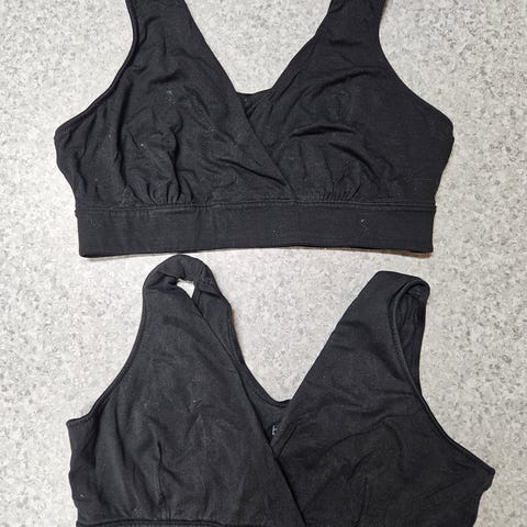 BOOB T-skjorter i størrelse XL. T-skjortene er laget i bomull og har kort erm og rund hals. Overdelen har et ekstra lag stoff foran som gir enkel tilgang for amming. Selges i to farger: hvit og mørk blå. Passer som basisplagg til hverdagsbruk under graviditet og ammeperiode. Kjøpt ny for 500kr pr stk.