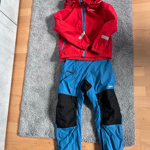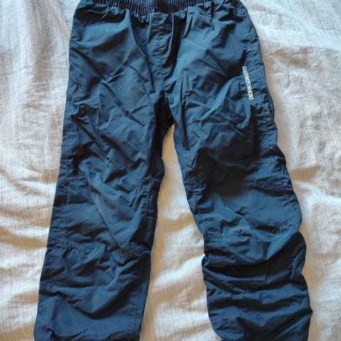 Veldig lite og pent brukt Vind- og vanntette Nobi skallbukse fra Didriksons i størrelse 129 med reflekterende detaljer ved anklene. De har strikk i midjen og borrelås ved anklene for optimal passform. Hentes eller sendes mot porto