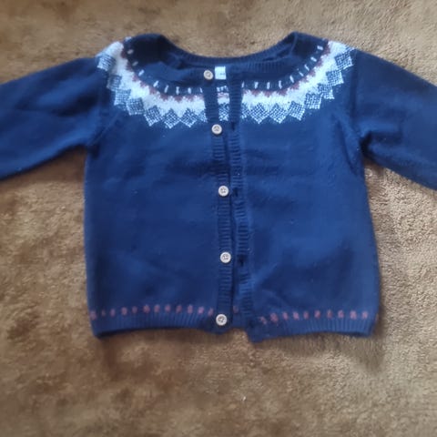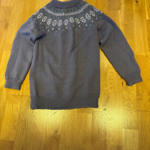 Strikket jakke i størrelse 6-7år. Jakken er egnet til hverdagsbruk og som et ekstra lag på kjølige dager.