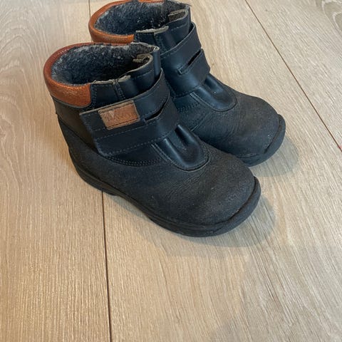 Kavat barnesko støvler i størrelse 27. Støvlene har yttermateriale i mørk farge med grov såle og innvendig fôr som gir ekstra komfort og varme. Passer til hverdagsbruk for barn, både ute og inne, i kjøligere værforhold.