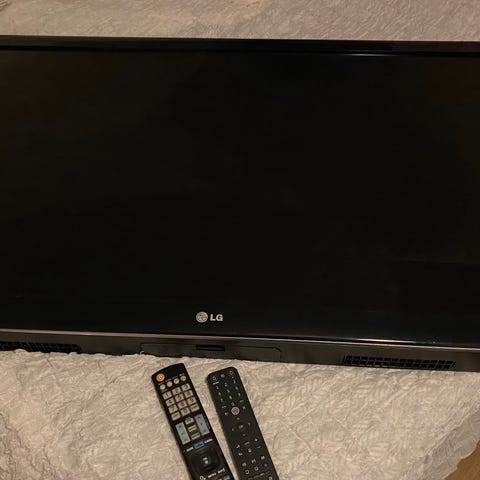 LG TV i svart farge. Står på bordstativ og har tilkoblinger på baksiden for blant annet strøm og eksterne enheter. Egnet som TV eller skjerm i stue, soverom eller andre rom der det er behov for en enkel skjermløsning.