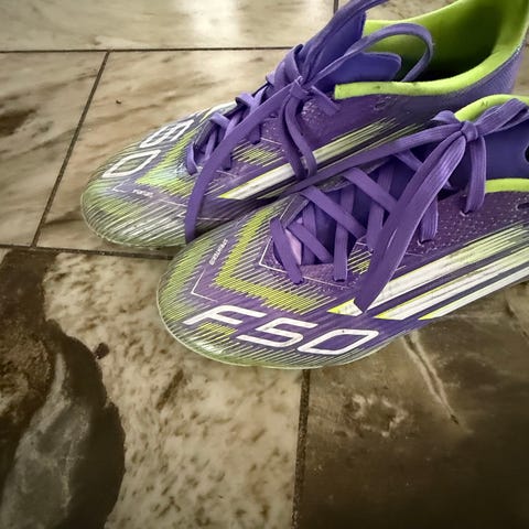 Selger et par helt nye og ubrukt Adidas F50 Club futsalsko i lilla farge, størrelse 37 1/3 (EU). Skoene er aldri brukt, men esken er dessverre kastet.