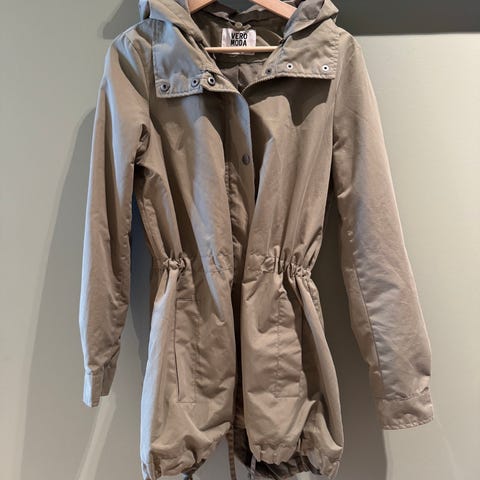 Marc Lauge ytterjakke for dame i størrelse L. Jakken er beige og laget i polyester. Modellen har glidelåslukking foran, stor krage og lommer i sidene. Passer som lett ytterjakke i hverdagen eller til overgangssesonger.